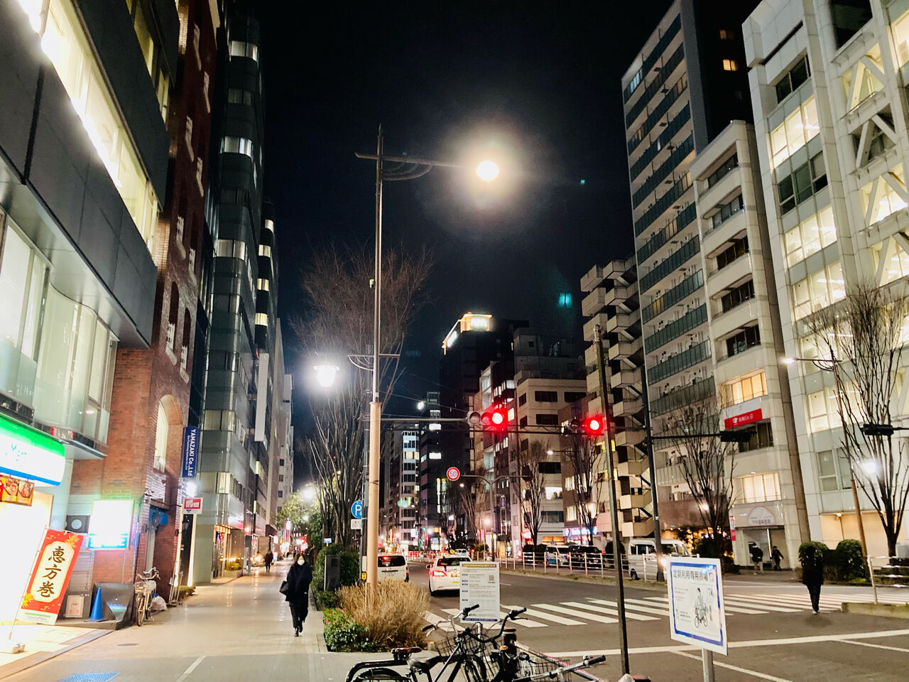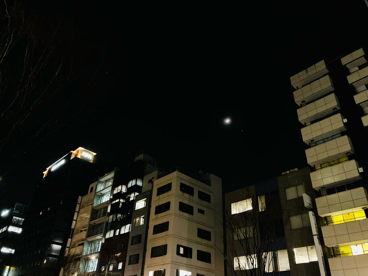 三日月が綺麗に輝く東京東日本橋の夜でした💕