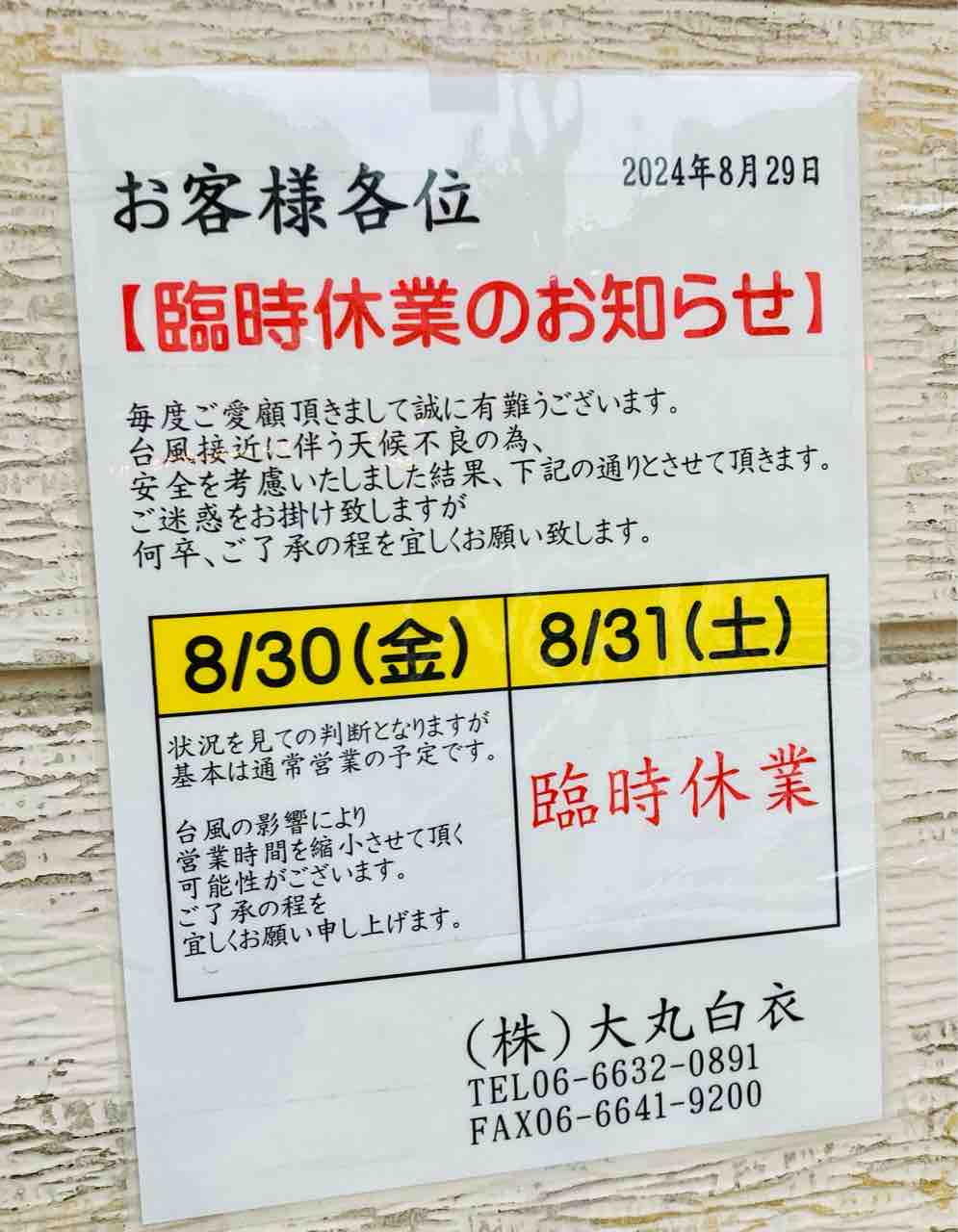 ウチの近所の白衣🥼屋さん臨時休業。