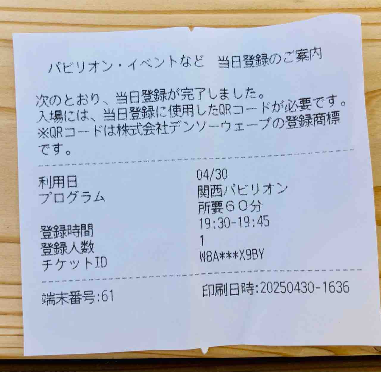 「関西パビリオン」予約が取れました。