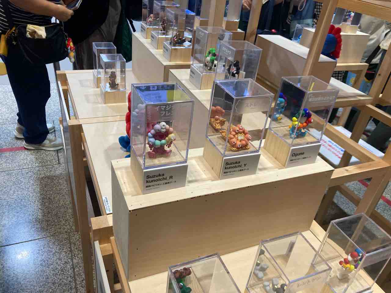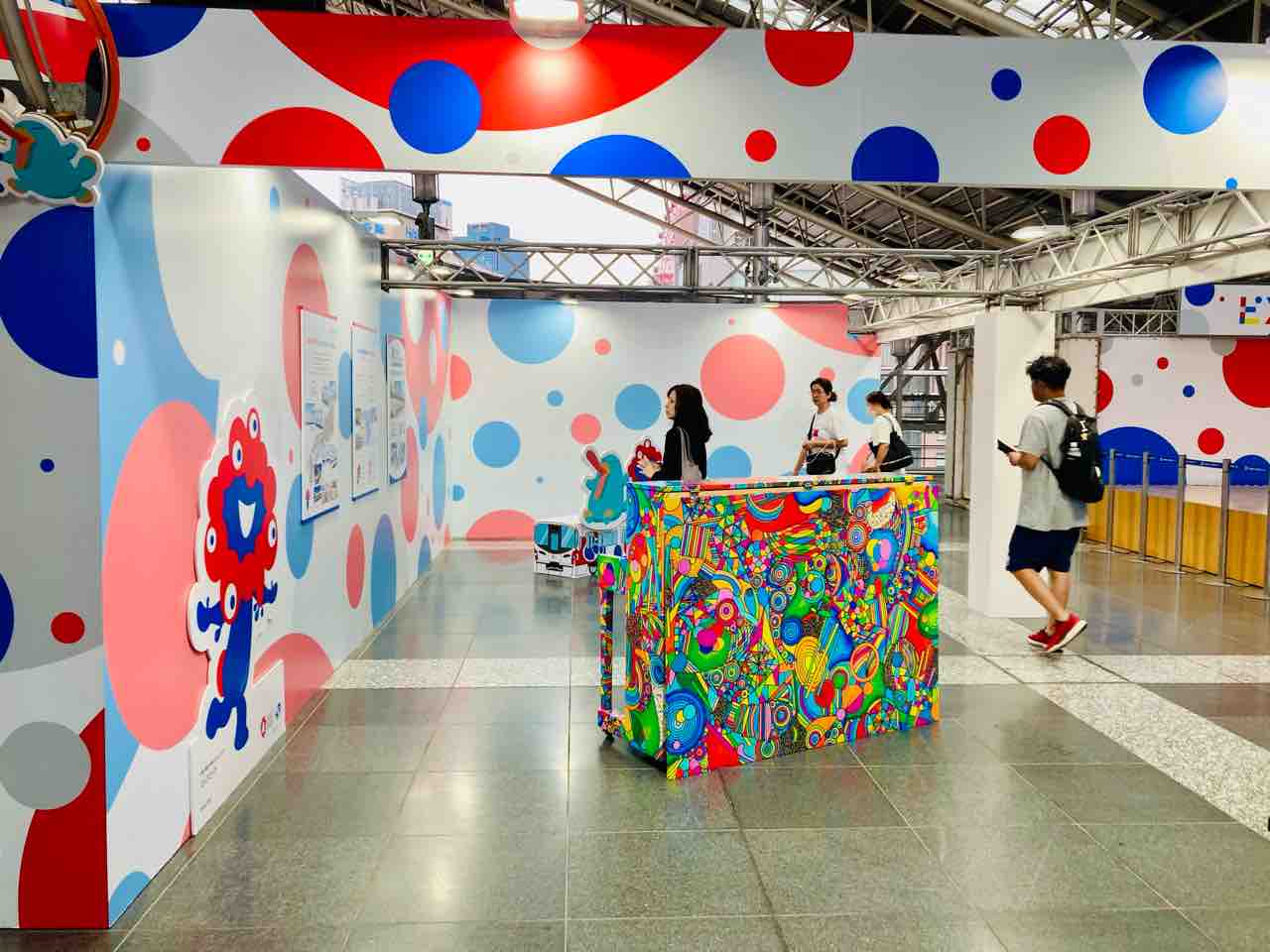 白いミャクミャク像に独自、ペインティングされた作品展示…らしいんですが…。