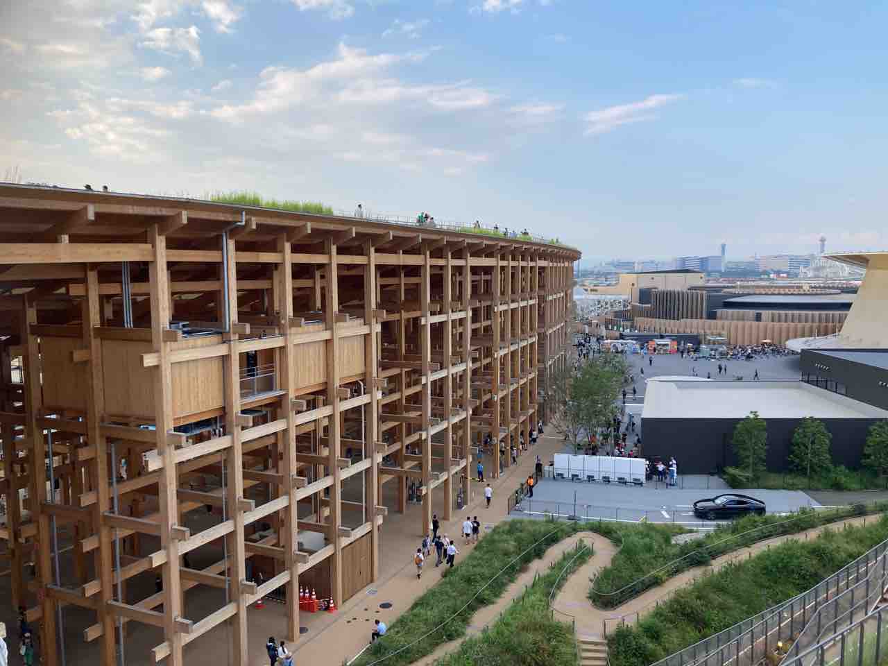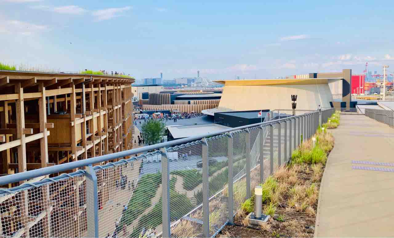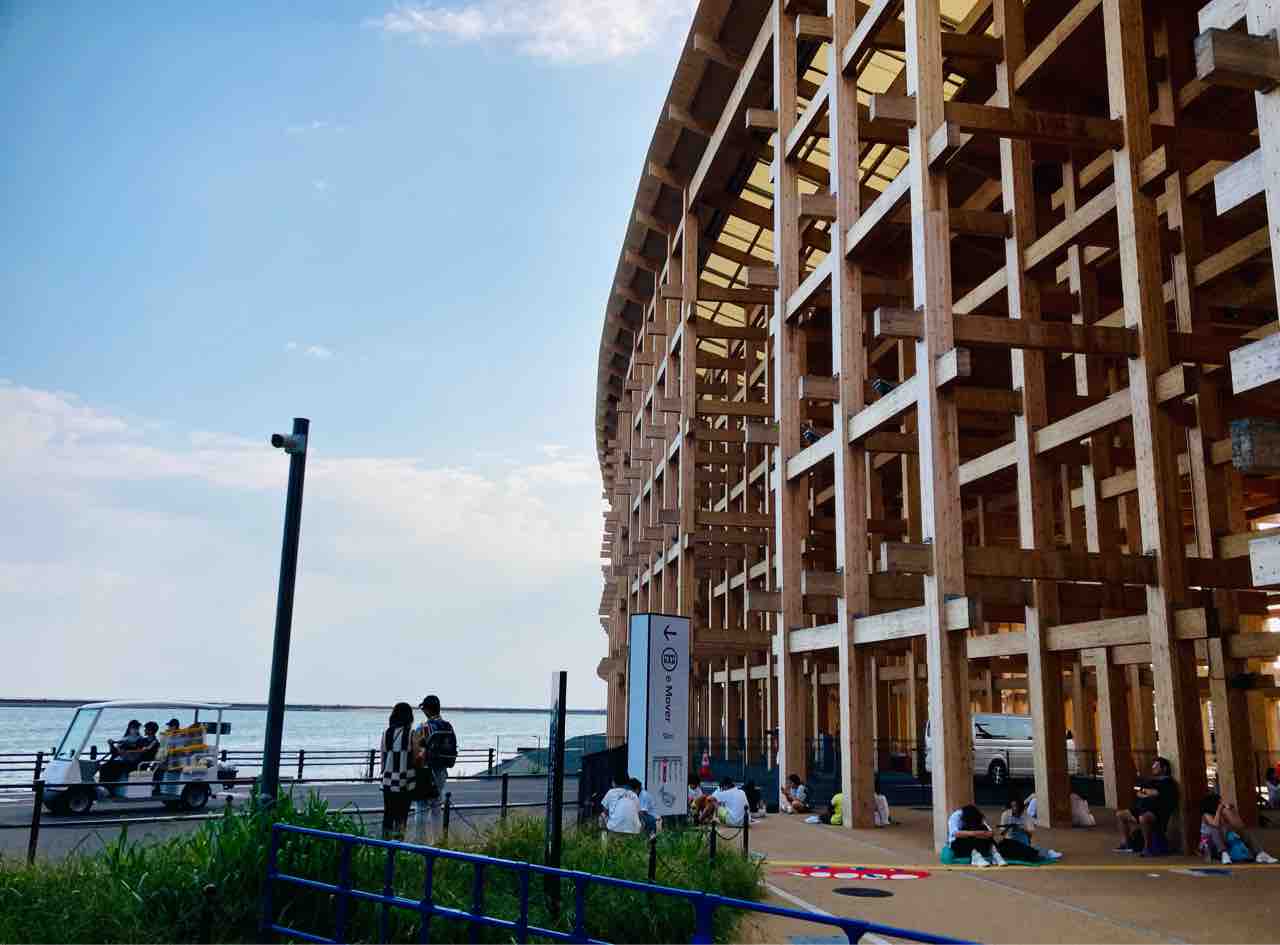 一度は高所から大屋根リングと花火