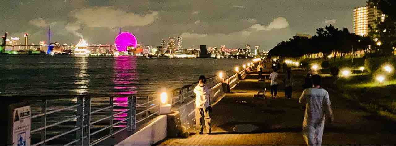 今回も海遊館裏手あたりで万博花火🎆見学。
