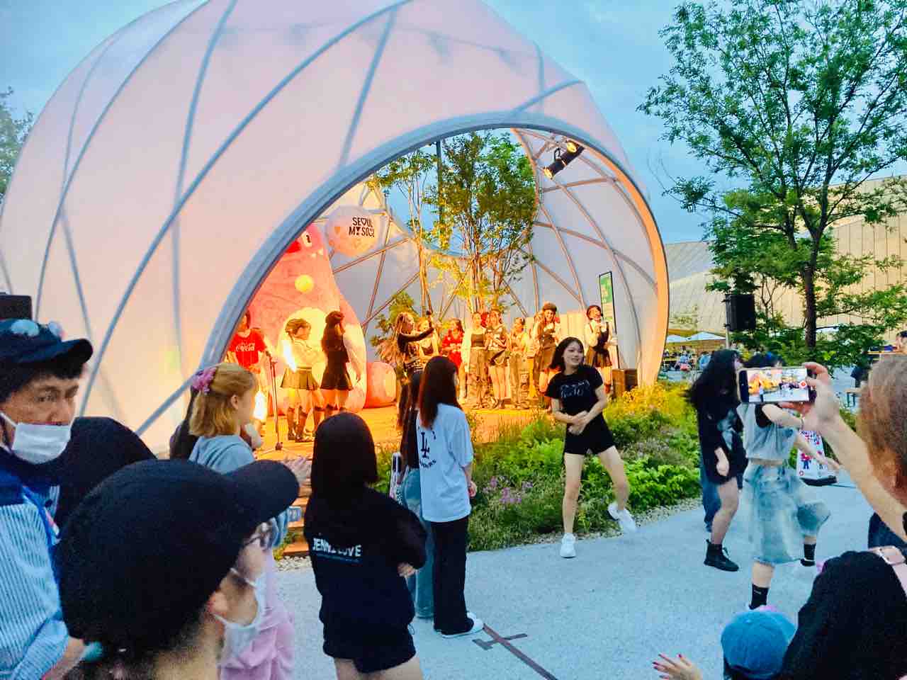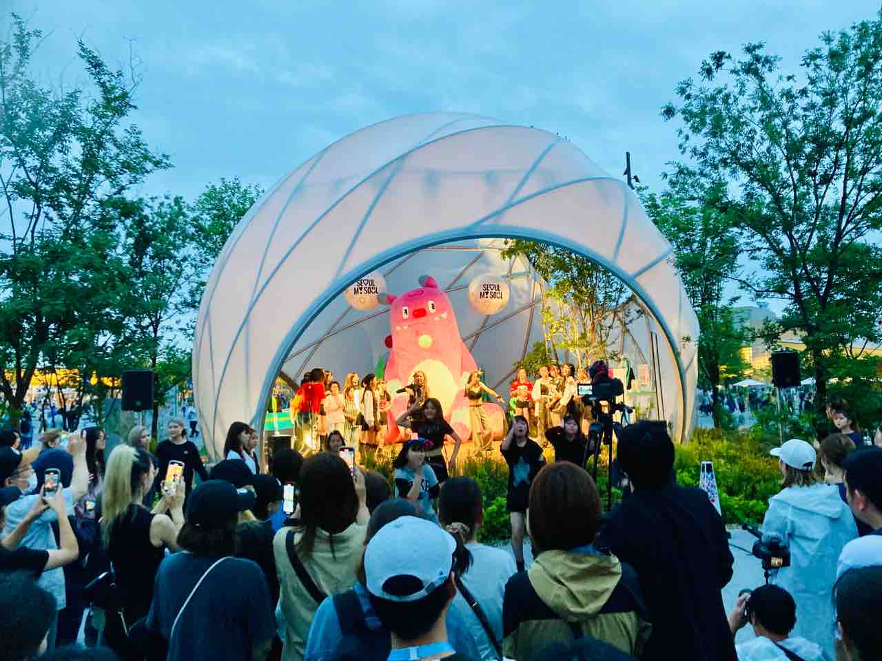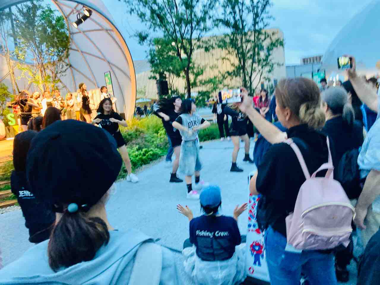 ショータイム終わって観客との記念撮影会だった様子でしたが