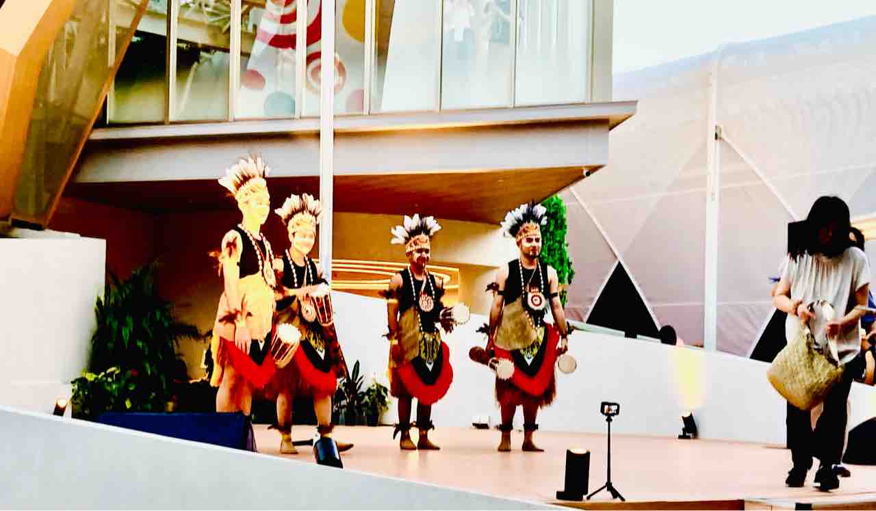 インドネシア🇮🇩館前に民族衣装のイケメン君たち。
