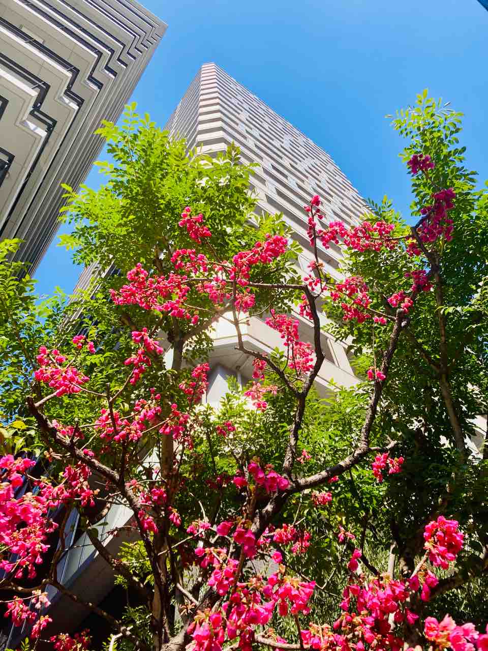 バイト先近くのタワマンエントランスの寒緋桜
