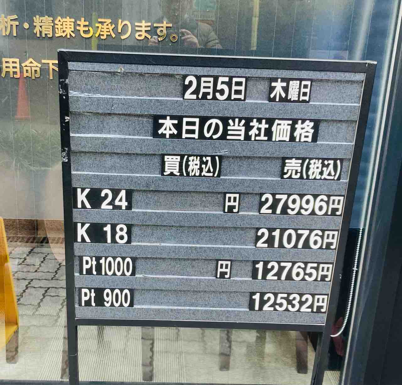 前回の北のロイヤル定点観測で貼り付けた金プラ価格表。👇