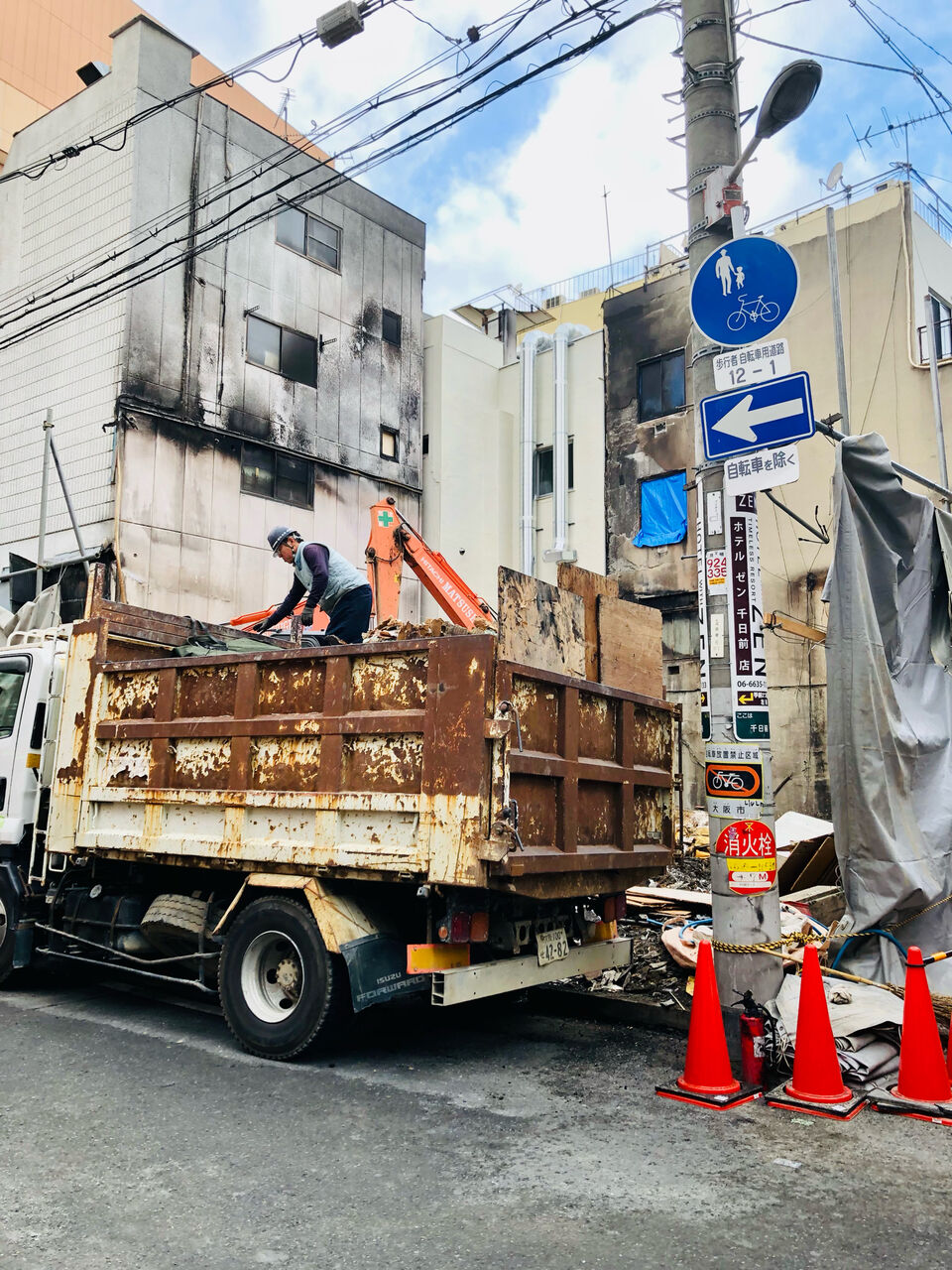 裏なんばの火災現場。